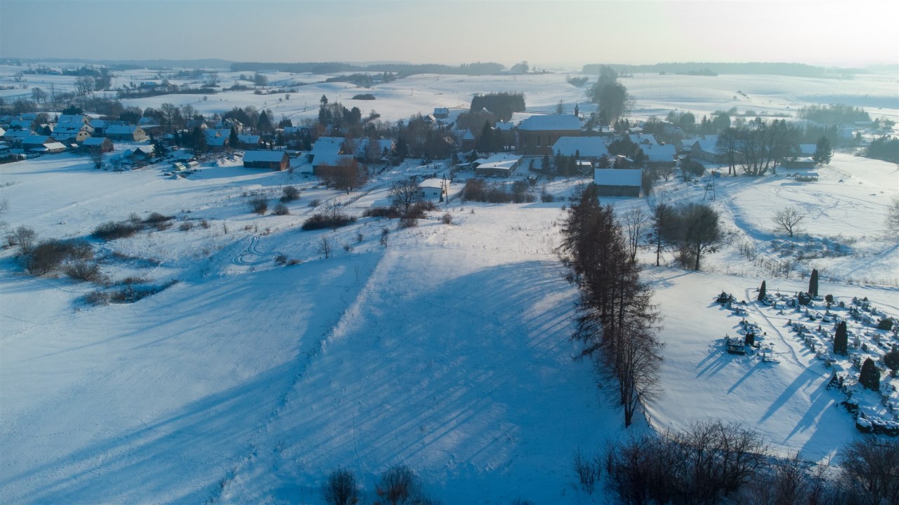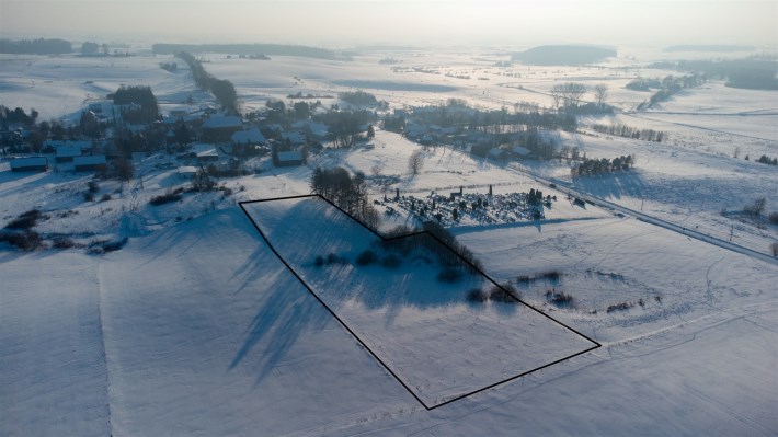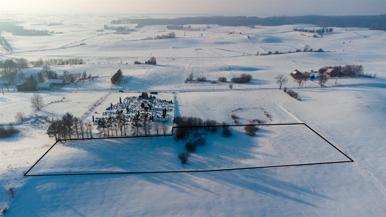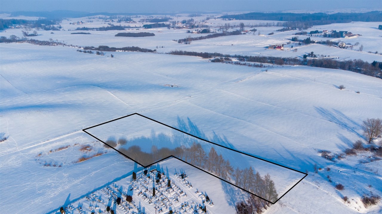 Działka położona jest na skraju wsi, w bezpośrednim sąsiedztwie cmentarza, co zapewnia ciszę, brak uciążliwej zabudowy oraz przewidywalne otoczenie.