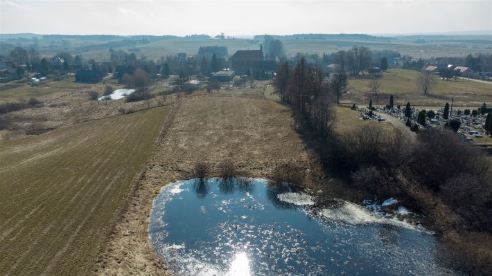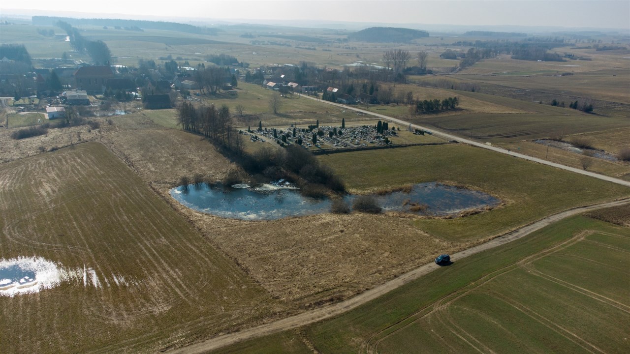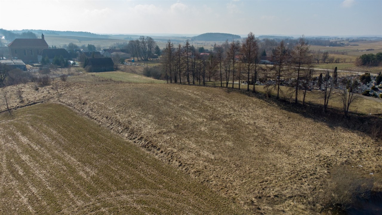 Działka położona jest na skraju wsi, w bezpośrednim sąsiedztwie cmentarza, co zapewnia ciszę, brak uciążliwej zabudowy oraz przewidywalne otoczenie.