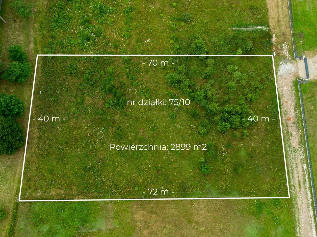 Powierzchnia 2899 m2 daje dużą swobodę w zagospodarowaniu terenu. Bez problemu zaplanujesz dom z garażem w bryle budynku, ogród oraz przestrzeń zapewniającą prywatność i komfort.